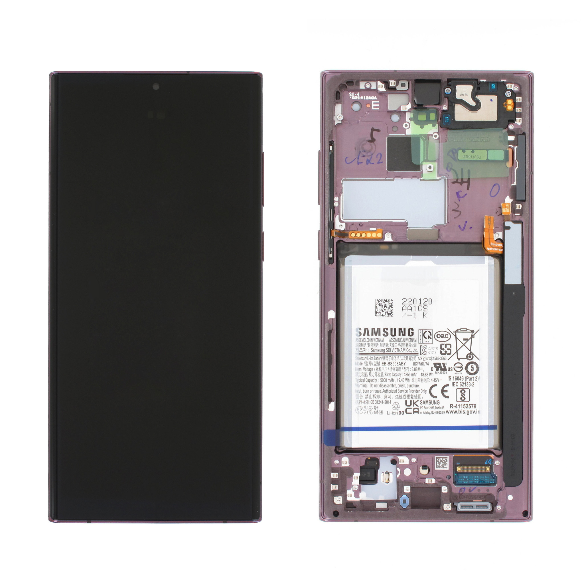 Samsung Galaxy S22 Ultra 5G Display + Batterie, Burgundy/Lila/Rosa, GH82-27487B