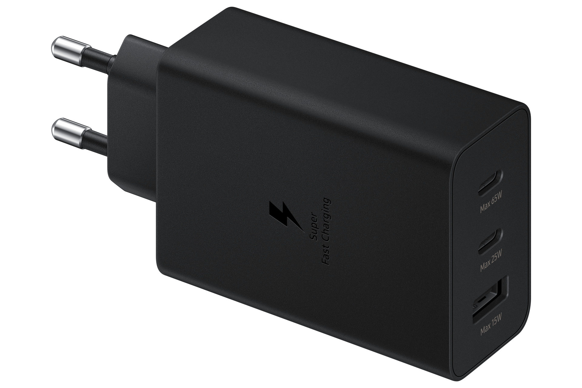 Samsung Trio Charger with 3x USB Ports (USB-C + USB-C + USB-A), EP-T6530NBEGEU, 65W/25W/15W, Black, Blister Packaging, 8806092673885;EP-T6530NBEGEU