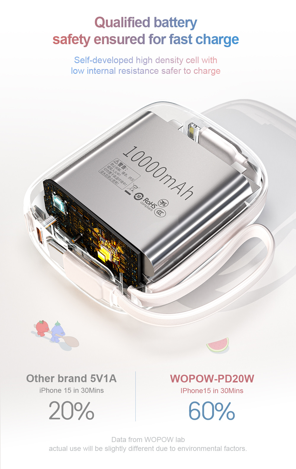 - Fabrikanttitel: SQ63 WOPOW 22.5W+PD20W 10000mah power bank with built in cable Purple