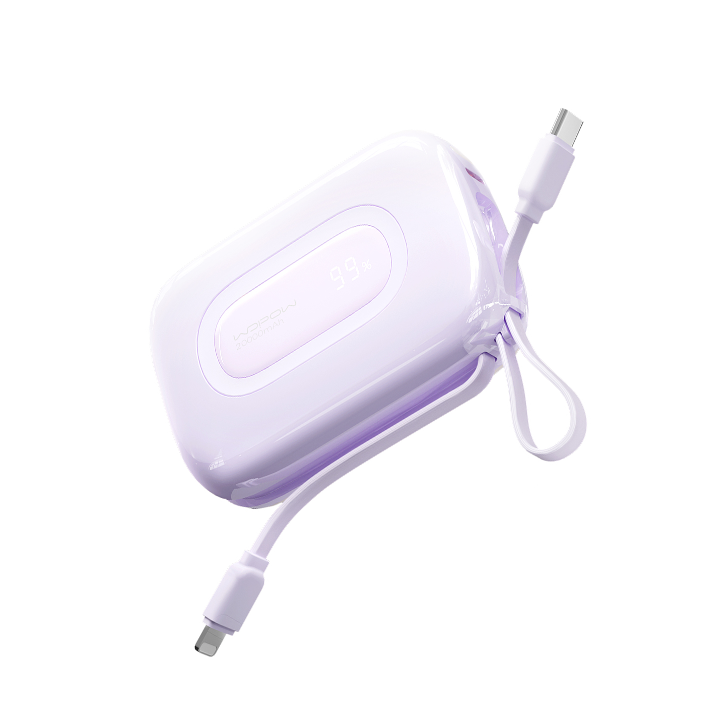 Wopow Powerbank met ingebouwde USB-C & Lightning Kabels, SQ73A, 20.000mah, 22.5W, Paars, 6933185740017