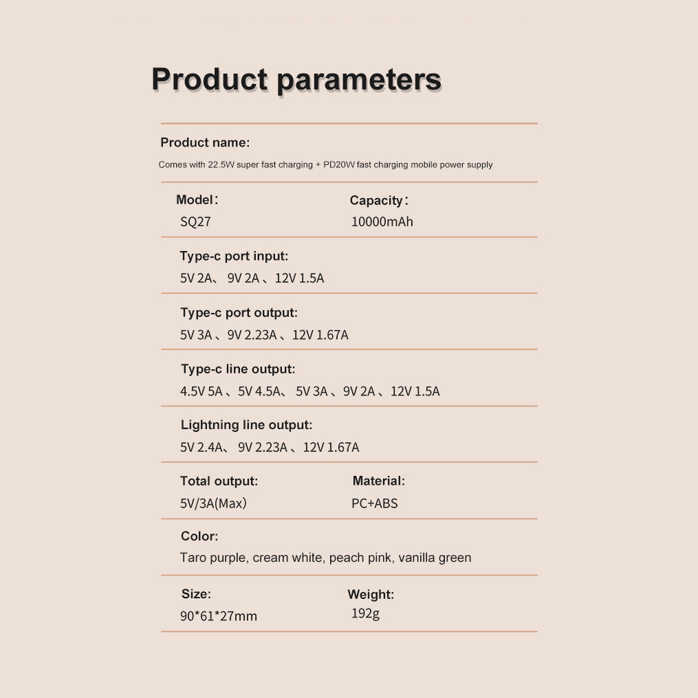 - Fabrikanttitel: SQ27 Super mini power bank 10000mah with lightning/type-c cable built-in White